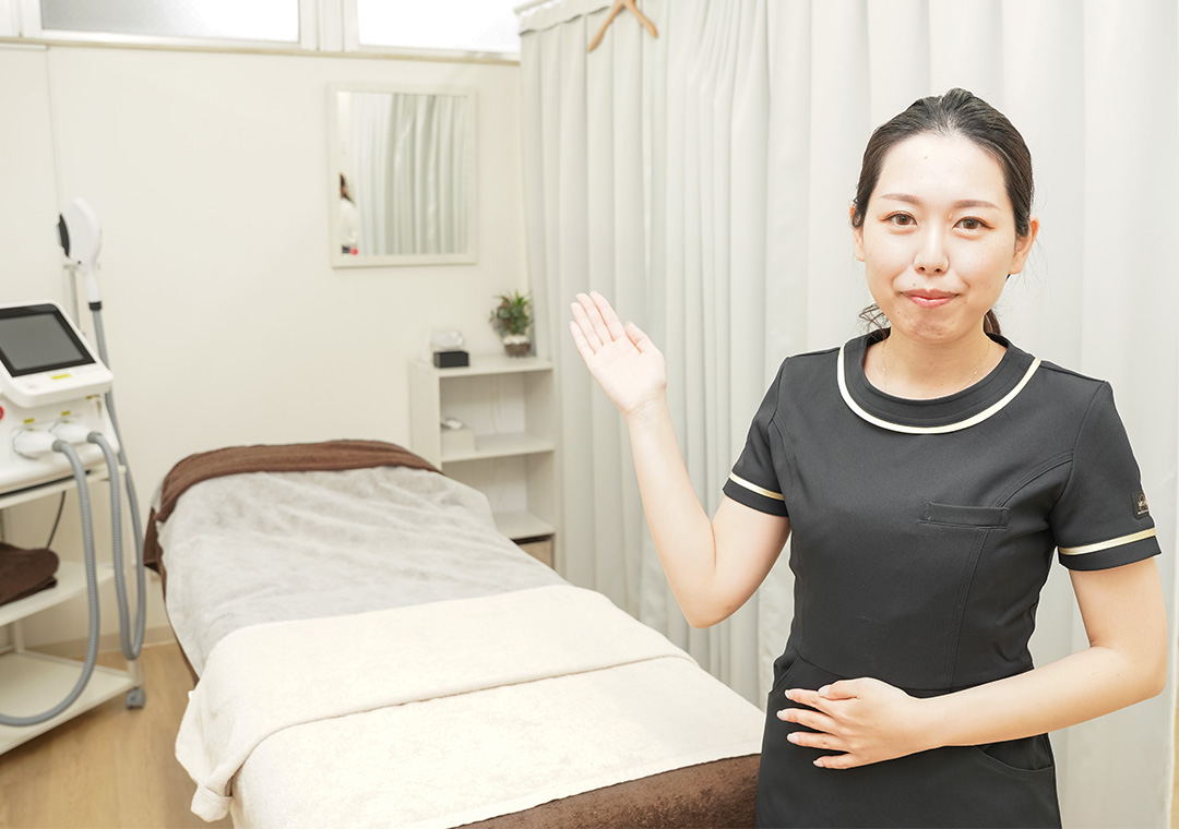 社内検定に合格したプロのエステティシャンが対応しますので、痛みが感じにくく、ほのかに温かみを感じる程度です。※個人差があります